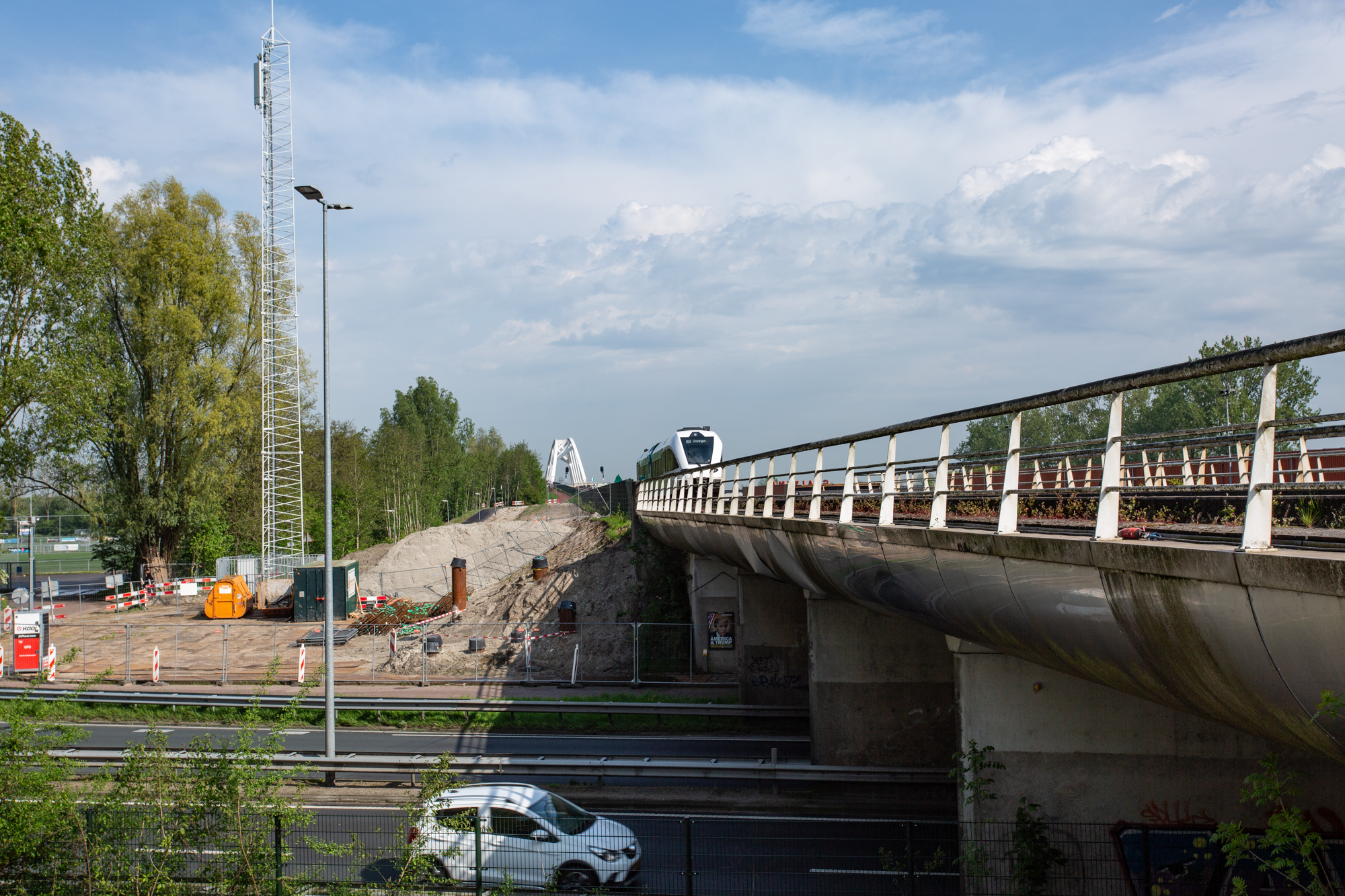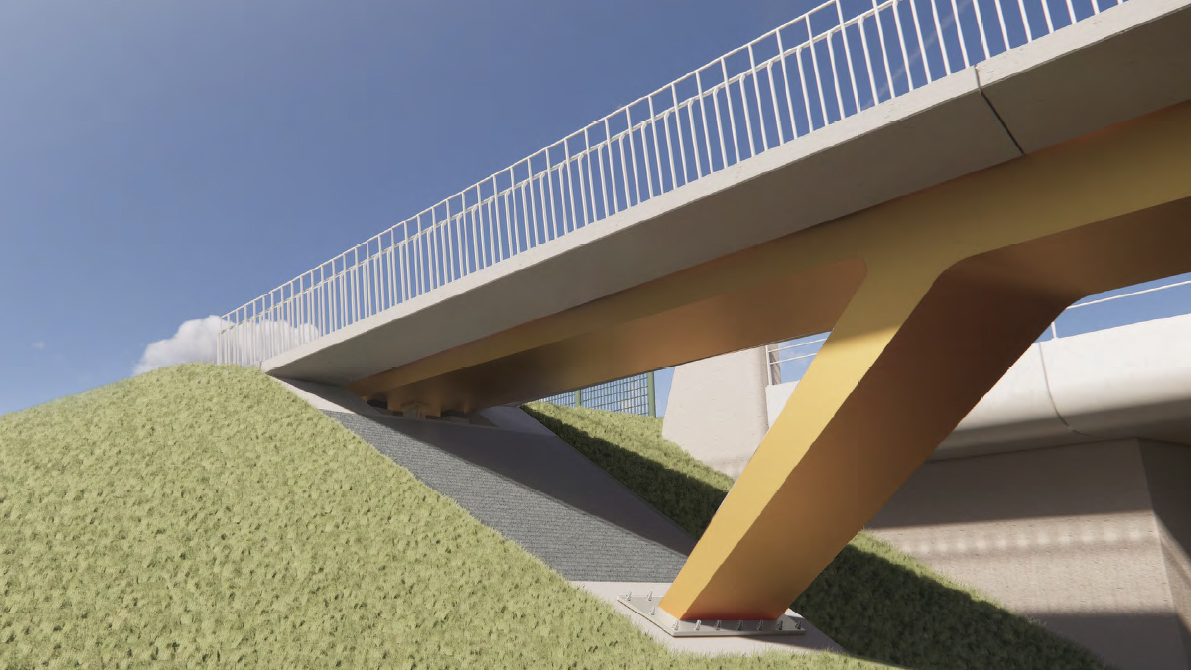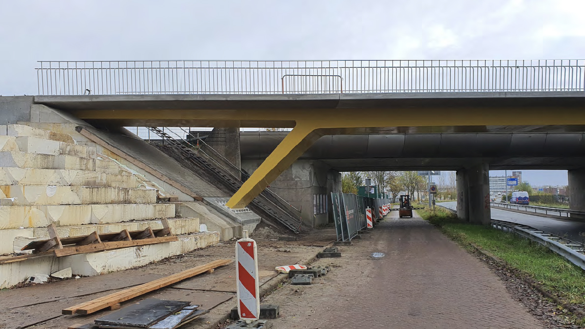 Voor de fietsverbinding bij de Walfridusbrug is een nieuwe fietsbrug gerealiseerd als onderdeel van de Doorfietsroute tussen Winsum en Groningen. Om het talud te verbreden zonder het naastgelegen spoor te belasten, is een lichtgewicht EPS-constructie toegepast. Deze oplossing voorkomt vervorming van de ondergrond en is direct belastbaar na aanleg. De uitvoering was technisch uitdagend door de complexe, vloeiende 3D-vorm en de integratie met het landhoofd op palen.
