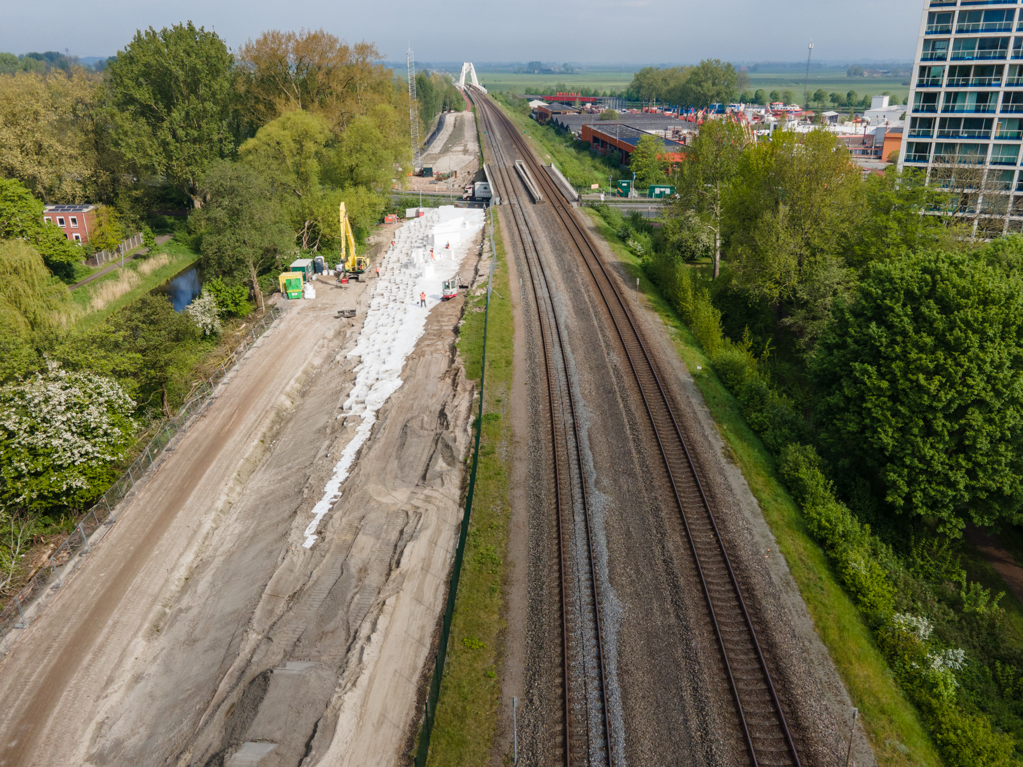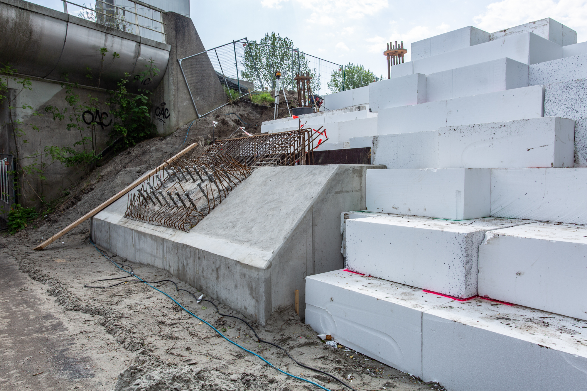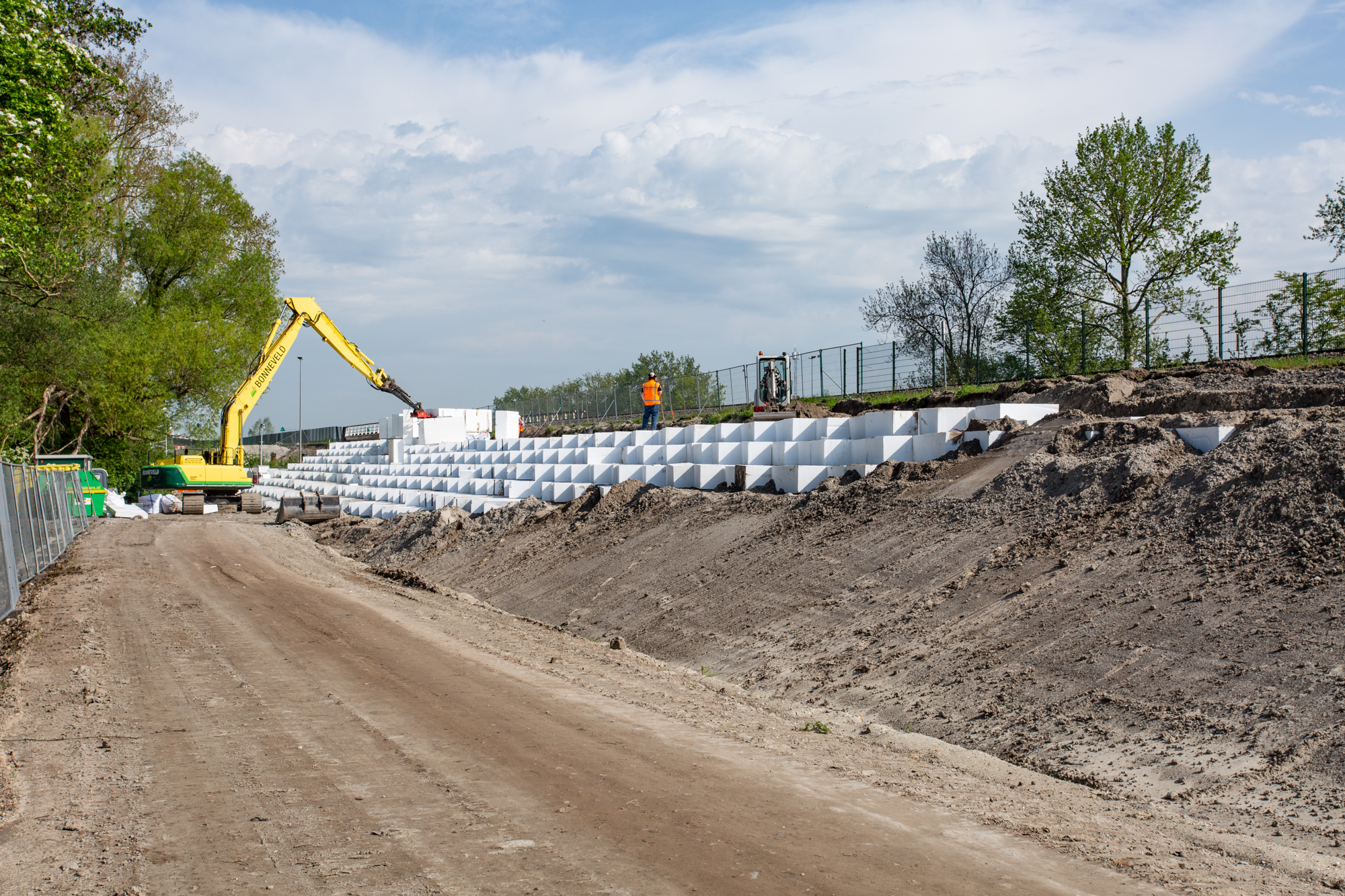 Om ruimte te creëren voor het nieuwe fietspad moet het bestaande talud worden verbreed. Om vervormingen in de fundering van het naastgelegen spoor te voorkomen wordt een EPS-constructie toegepast voor de verbreding. Hiermee ontstaat een lichtgewicht ophoogconstructie die de ondergrond ontlast en na aanbrengen direct kan worden belast.