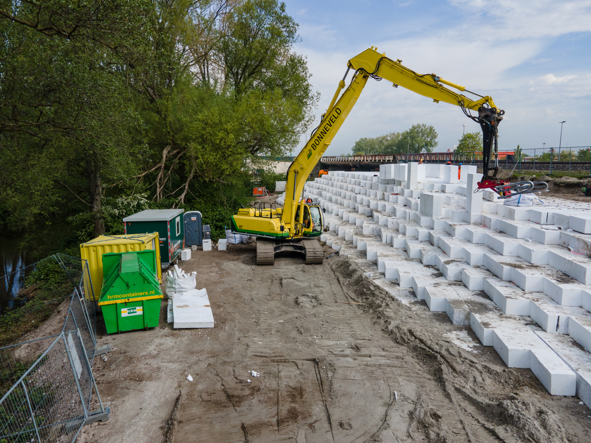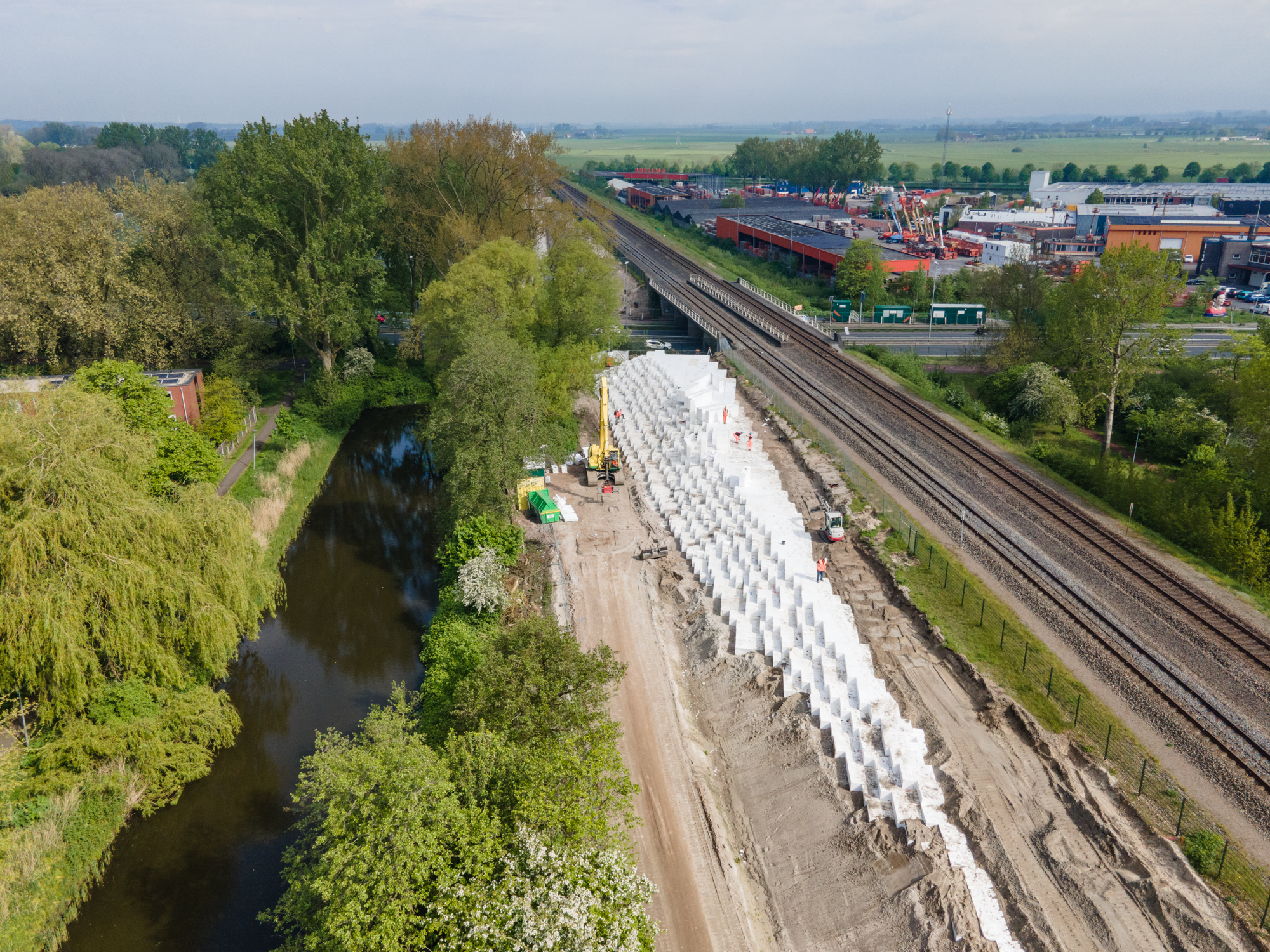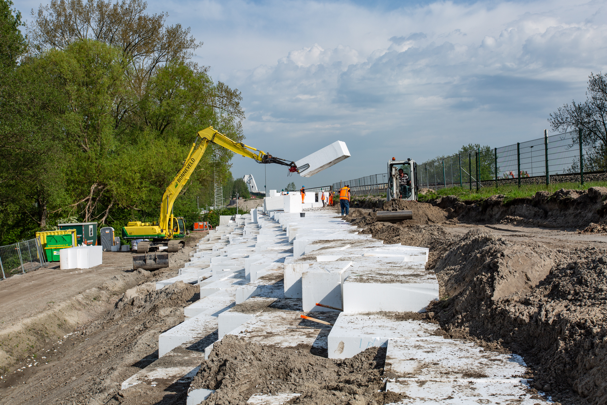 Om ruimte te creëren voor het nieuwe fietspad moet het bestaande talud worden verbreed. Om vervormingen in de fundering van het naastgelegen spoor te voorkomen wordt een EPS-constructie toegepast voor de verbreding. Hiermee ontstaat een lichtgewicht ophoogconstructie die de ondergrond ontlast en na aanbrengen direct kan worden belast.