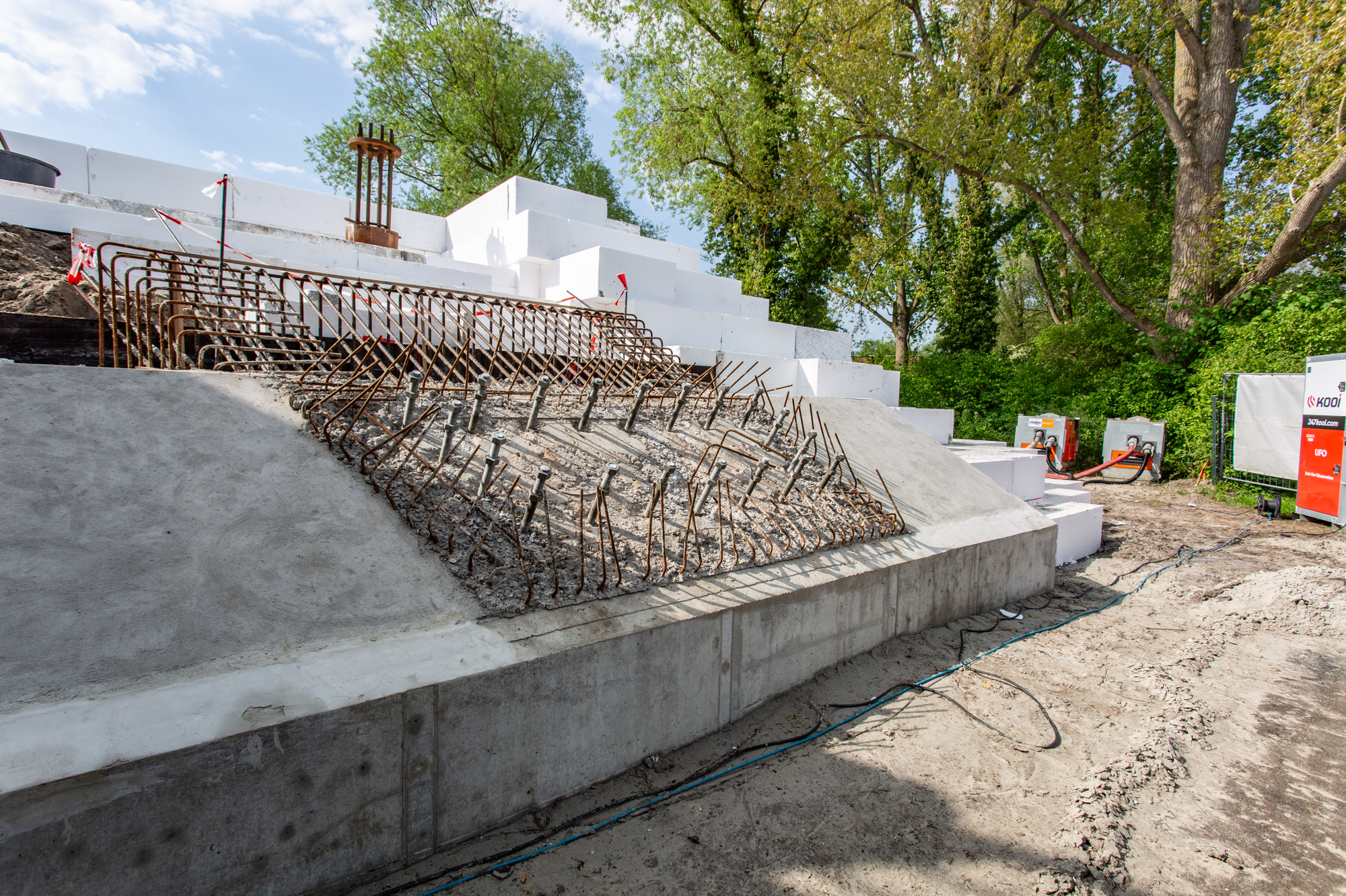 De uitdaging bij dit project zat voornamelijk in de vloeiende organische 3D vorm. Samen met het integreren van het landhoofd op palen was dit een puzzel bij het maken van het 2D en 3D legplan.