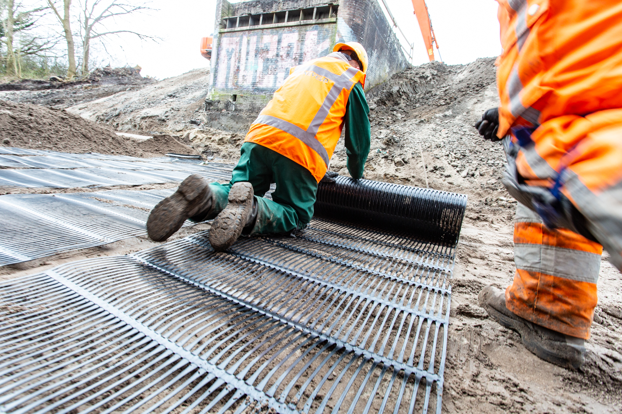 Ontwerpen, leveren en aanbrengen gewapende grondconstructie voor landhoofden