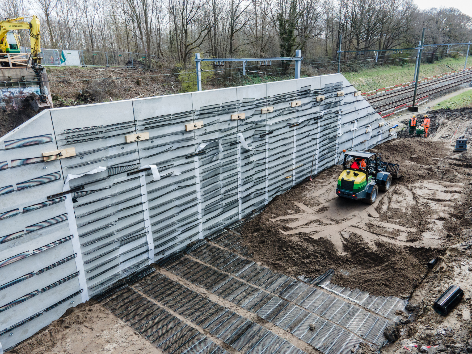 Gewapende grondconstructie zonder treinuitval