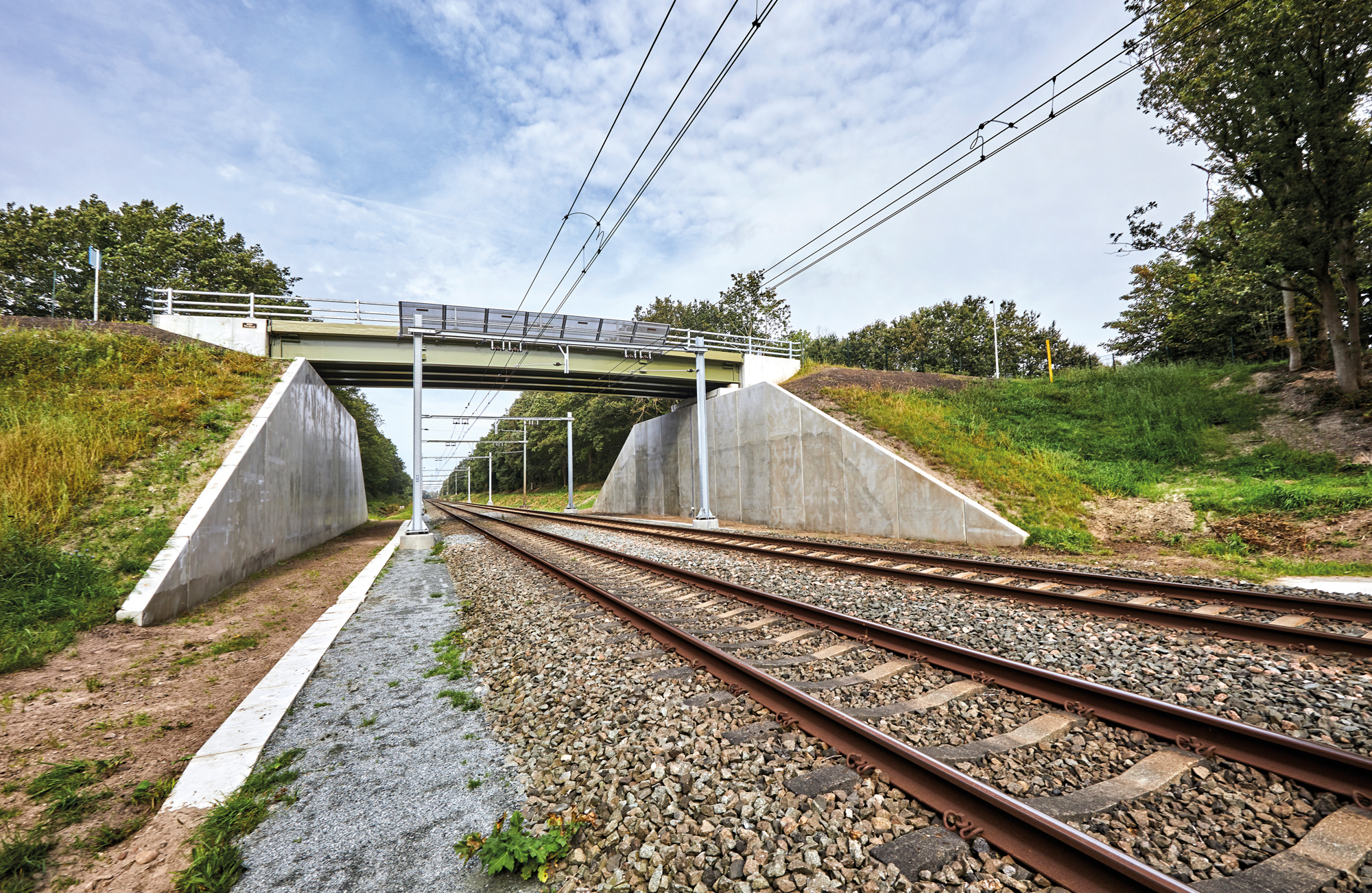 Het spoorviaduct in Steenwijkerland wordt vervangen door een duurzame brug met het Beton+ systeem, zonder hinder voor het treinverkeer. In opdracht van ProRail en Dura Vermeer realiseert Joosten Concepts een gewapende grondconstructie met betonnen panelen. Door de beperkte ruimte en de eis dat het treinverkeer doorgaat, is gekozen voor een verticale bouwmethode zonder systeembekisting. De nieuwe brug is duurzaam dankzij hergebruik van stalen balken en een lichtgewicht composiet brugdek, wat materiaalgebruik en CO₂-uitstoot vermindert.
