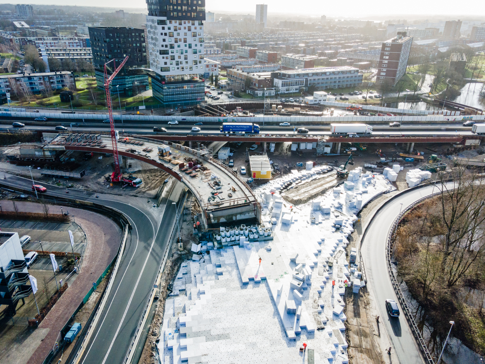 Met Aanpak Ring Zuid maakt Rijkswaterstaat de 12 kilometer lange zuidelijke ringweg door de stad Groningen klaar voor morgen. Verschillende cruciale kruisingen worden gereconstrueerd voor een optimale doorstroming. Op verschillende plaatsen in dit megaproject worden wegen, opritten en afritten opgehoogd met een lichtgewicht EPS-constructie.