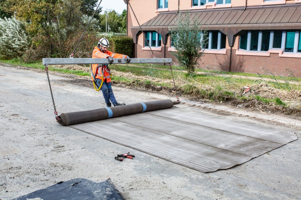 Voor Aanpak Ring Zuid Groningen worden EPS-constructies toegepast voor lichte ophogingen van wegen en op- en afritten. Omdat EPS extra bescherming nodig heeft tegen UV, brand en vandalisme, is gekozen voor Concrete Canvas als duurzame afwerking. Concrete Canvas combineert de flexibiliteit van geotextiel met de sterkte van beton, zonder zwaar materieel of fundering. Dankzij slimme verankering en samenwerking tussen partners is een veilige, kostenefficiënte en langdurige oplossing gerealiseerd.