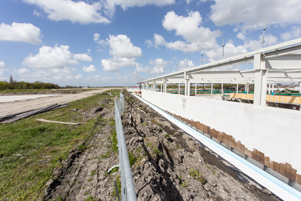 Joosten Kunststoffen leverde de benodigde blokken EPS100, de kramplaten om de verschillende lagen te fixeren en LDPE folie om de EPS constructie vloeistofdicht af te dichten. Joosten Concepts partner Van Etten installeerde de complete constructie.