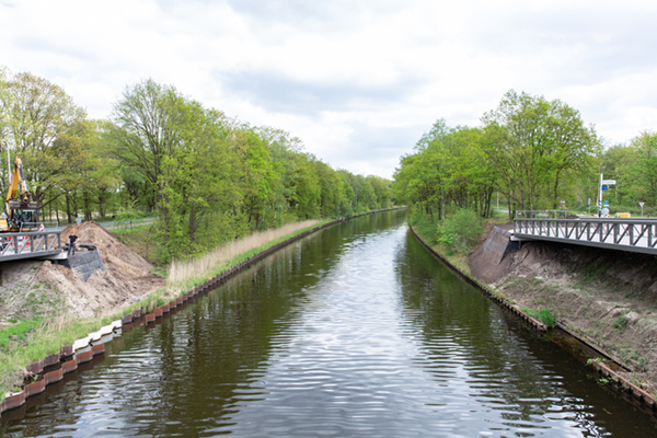 Ruim twee jaar na het instorten van de oude fietsbrug over het Wilhelminakanaal in de gemeente Best, bouwt Haasnoot Bruggen een nieuwe brug die de Terraweg met de NCB-weg verbindt. Om de op-/afritten van de brug aan te laten sluiten op de fietspaden bouwt Joosten Concepts partner Bonneveld aan weerszijden een gewapende grondconstructie met een groene facing, ontworpen door Geologics.